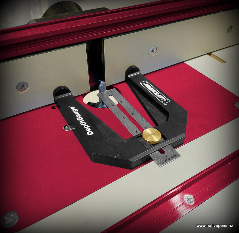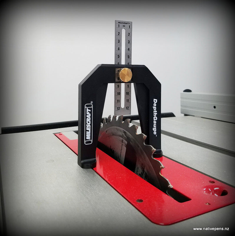 Use the Milescraft® DepthGauge™ to quickly and accurately locate, measure, and mark blade and bit heights, or fence offsets.