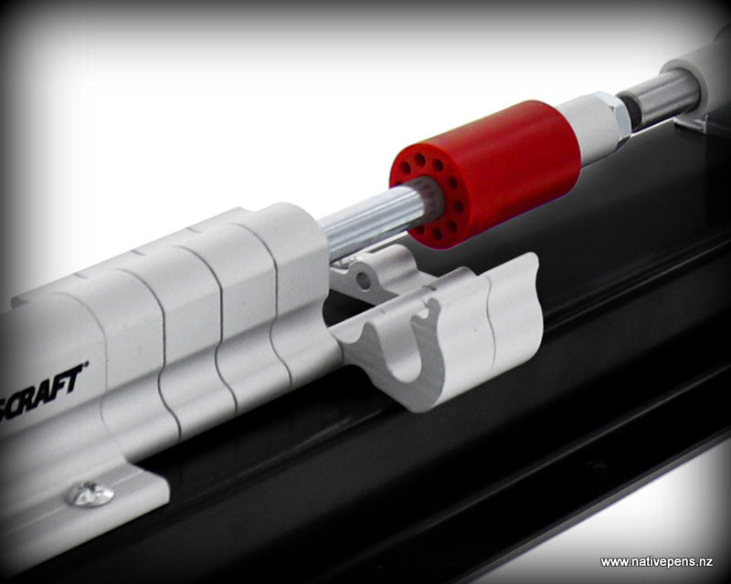 - Spring-loaded receiving pad keeps components aligned, straight and ensures solid fitting pen pieces